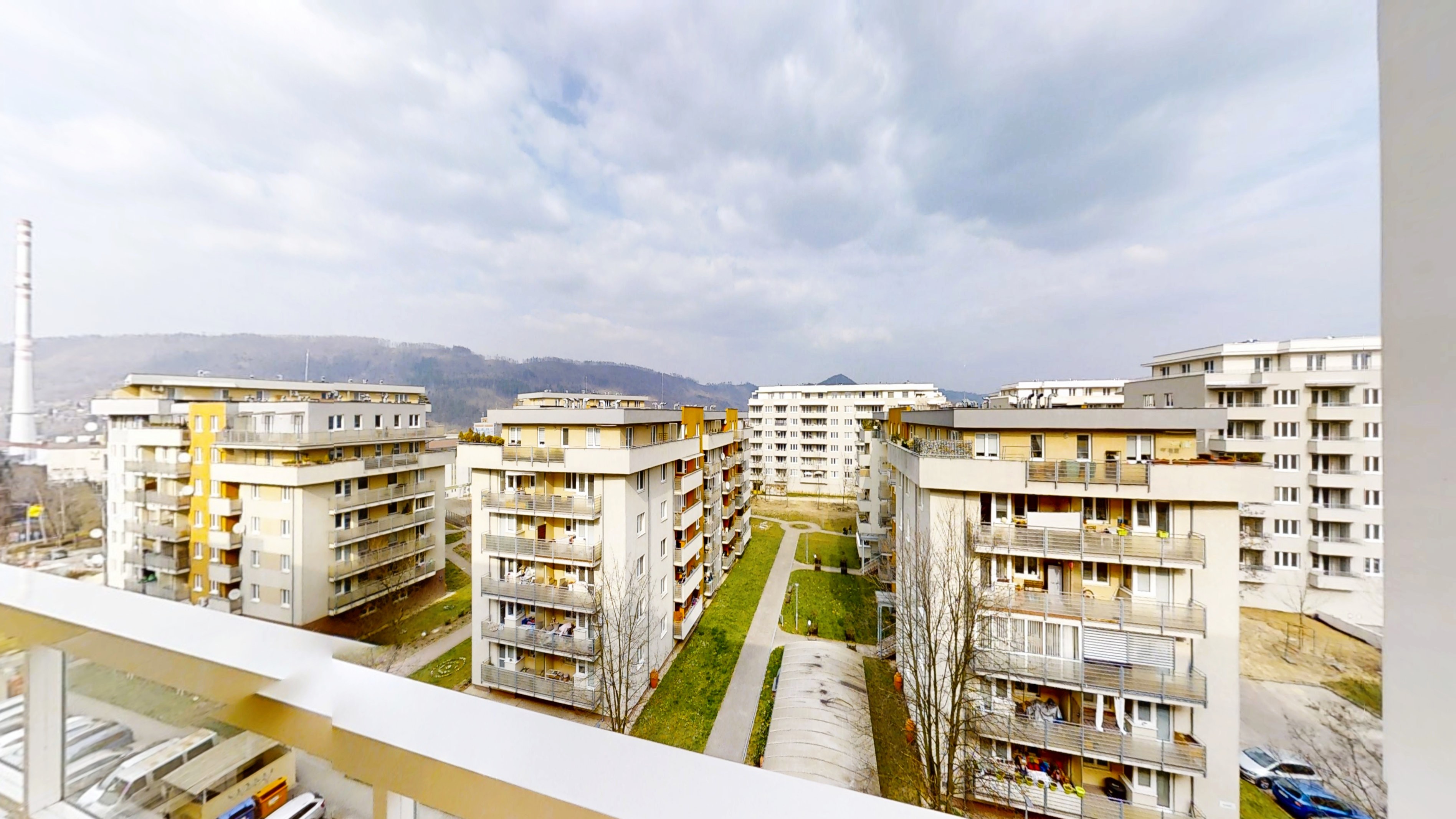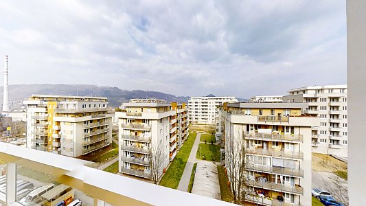 Z bytu je príjemný výhľad na moderné projekty ako Arboreum a Zelené Vlčince, čo dodáva lokalite atraktívny mestský charakter.
